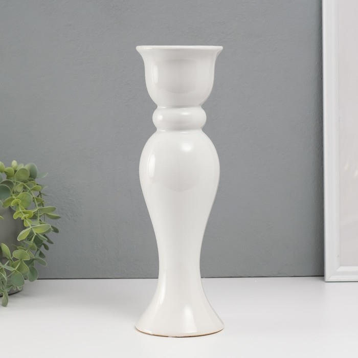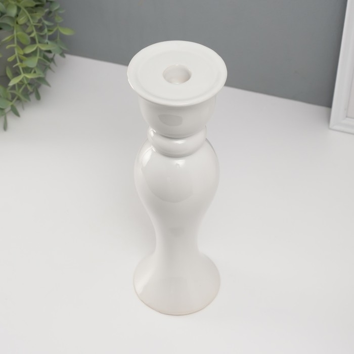 Подсвечник керамика на 1 свечу "Вуаль" d=1,5 см белый 9,8х9,8х30,5 см