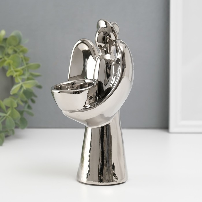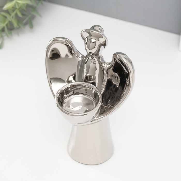 Подсвечник керамика на 1 свечу "Ангел с нимбом" d=4 см серебро 11,5х10х18,5 см