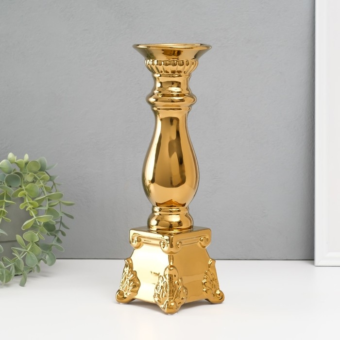 Подсвечник керамика на 1 свечу "Нуово" d=1,5 см золото 10х10х31,5 см