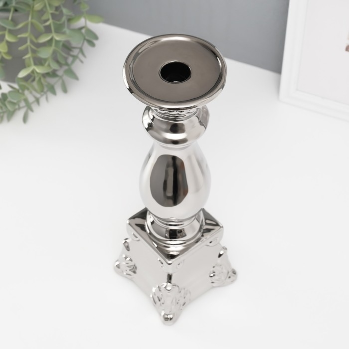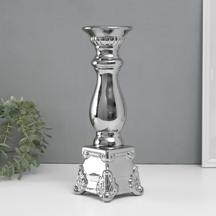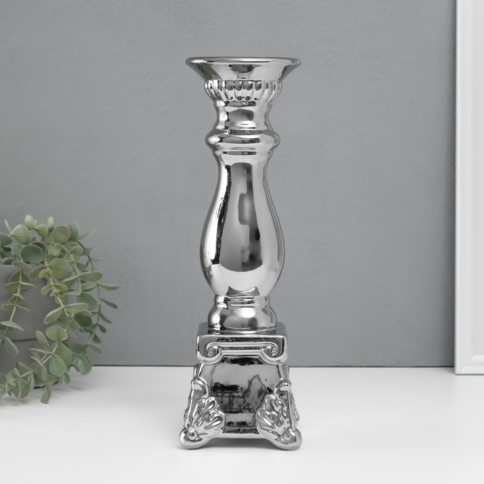 Подсвечник керамика на 1 свечу "Нуово" d=1,5 см серебро 10х10х31,5 см