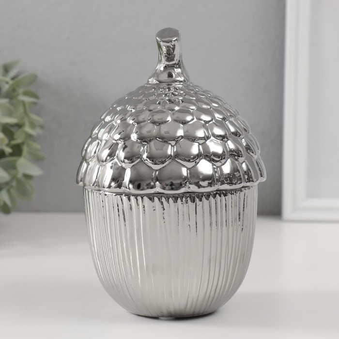 Шкатулка керамика "Жёлудь" серебро 12х12х18 см