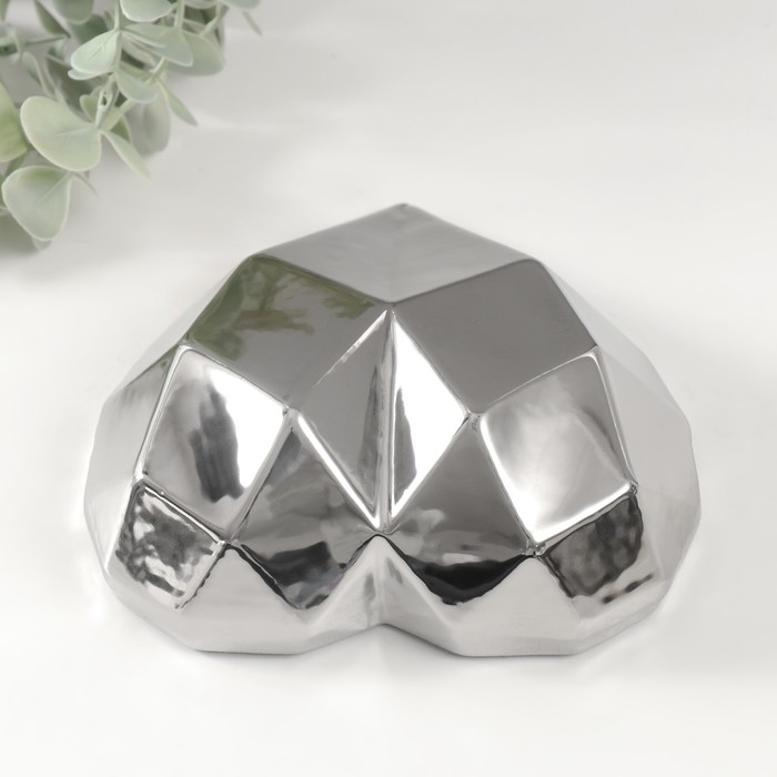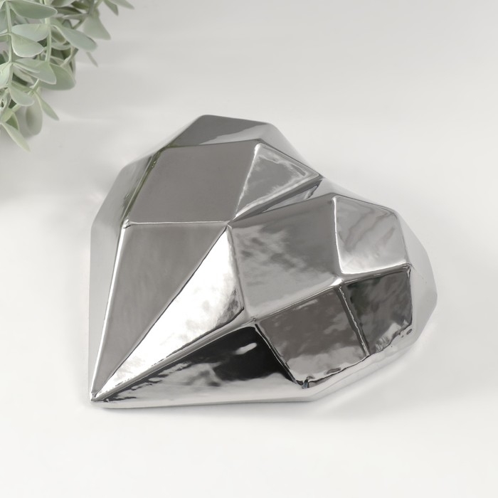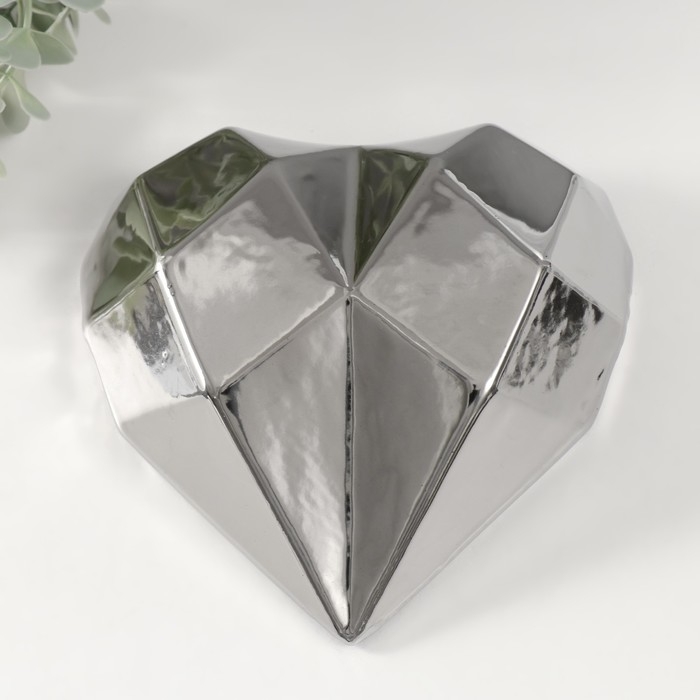 Сувенир керамика "Сердце 3D грани" серебро 15х15х5 см