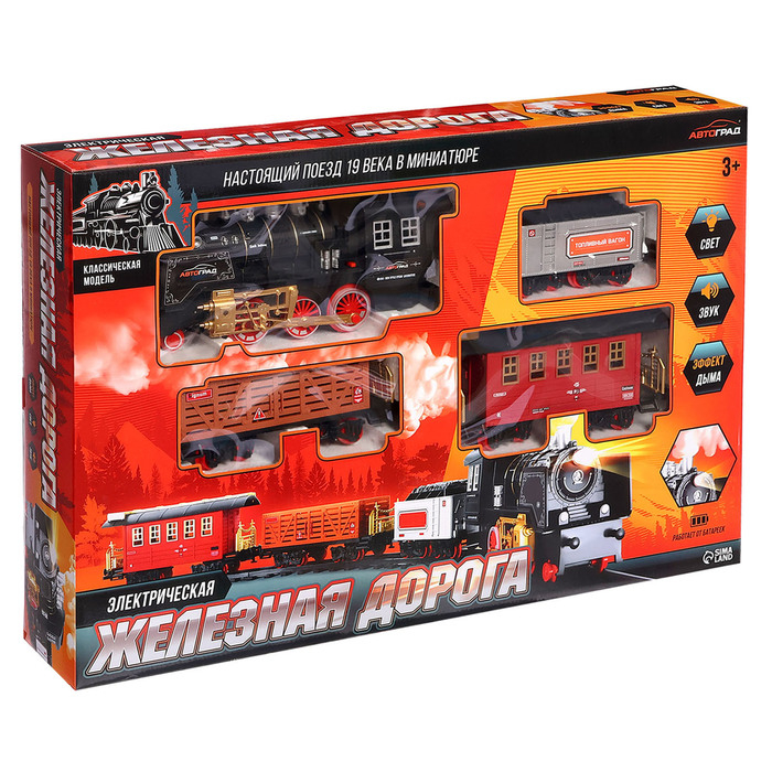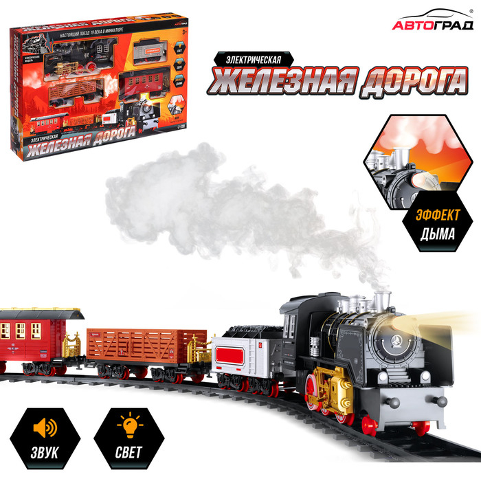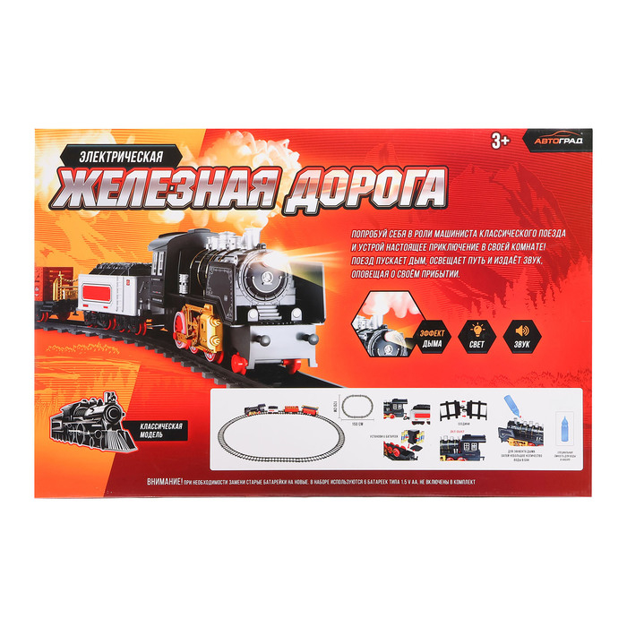 Железная дорога «Классика», свет и звук, с дымом, работает от батареек