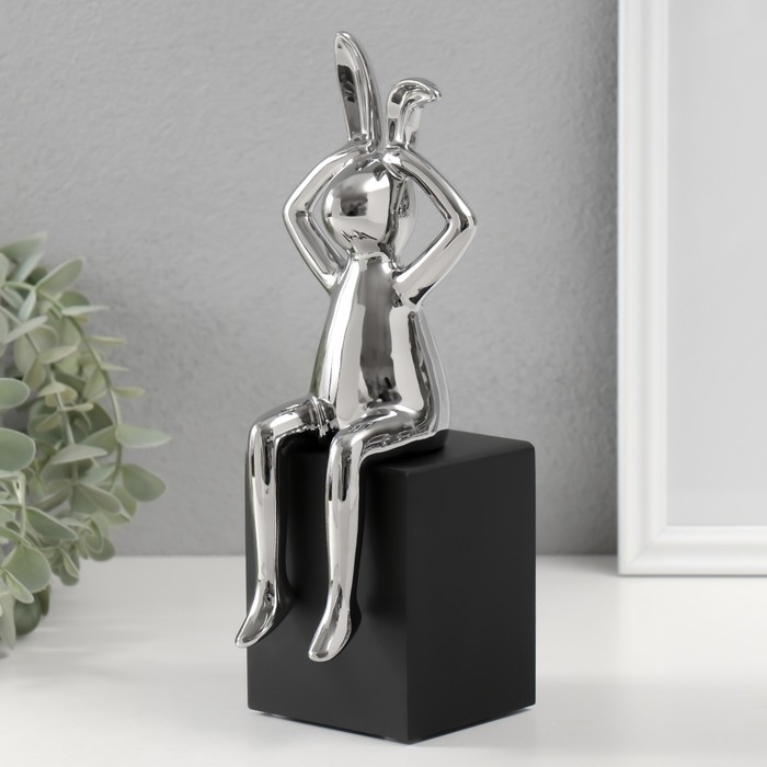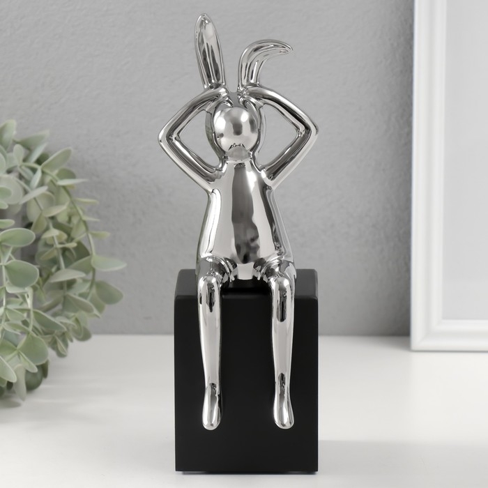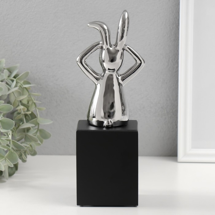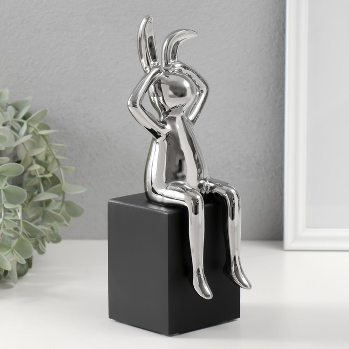 Сувенир керамика "Кролик держит ушки" серебро 7,8х10х27 см