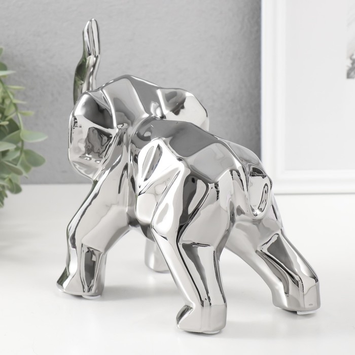 Сувенир керамика "Геометрия. Слон" серебро 11х26х18 см