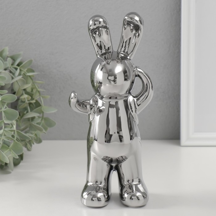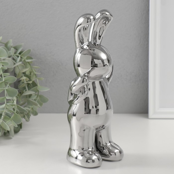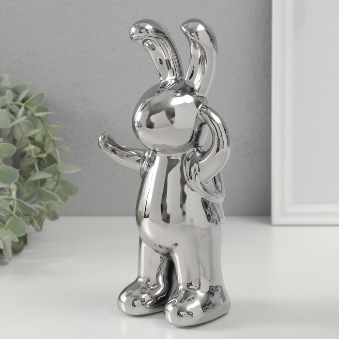 Сувенир керамика "Модный зайка" серебро 7х9,5х22 см