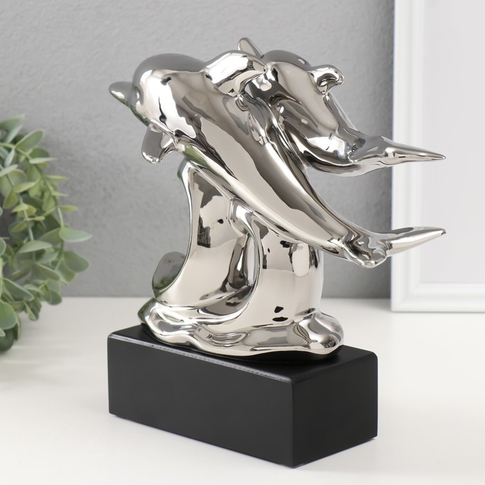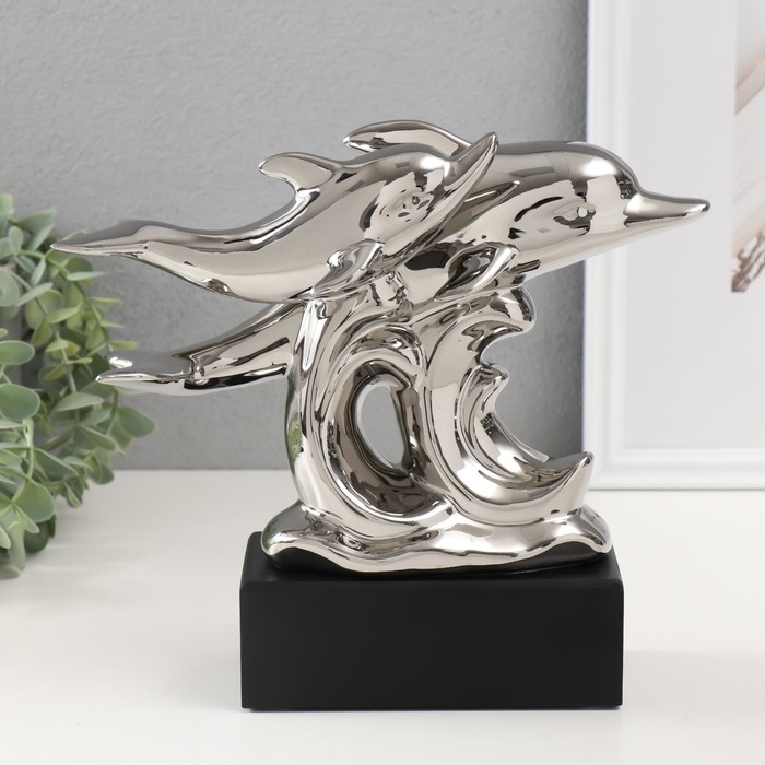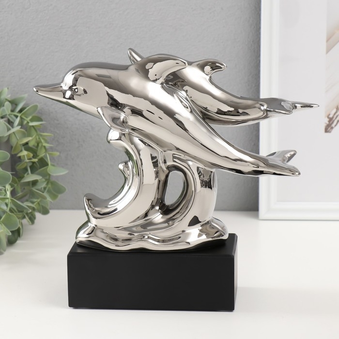 Сувенир керамика "Дельфины на волнах" серебро 7,3х22х23 см