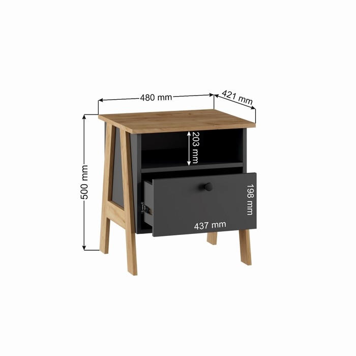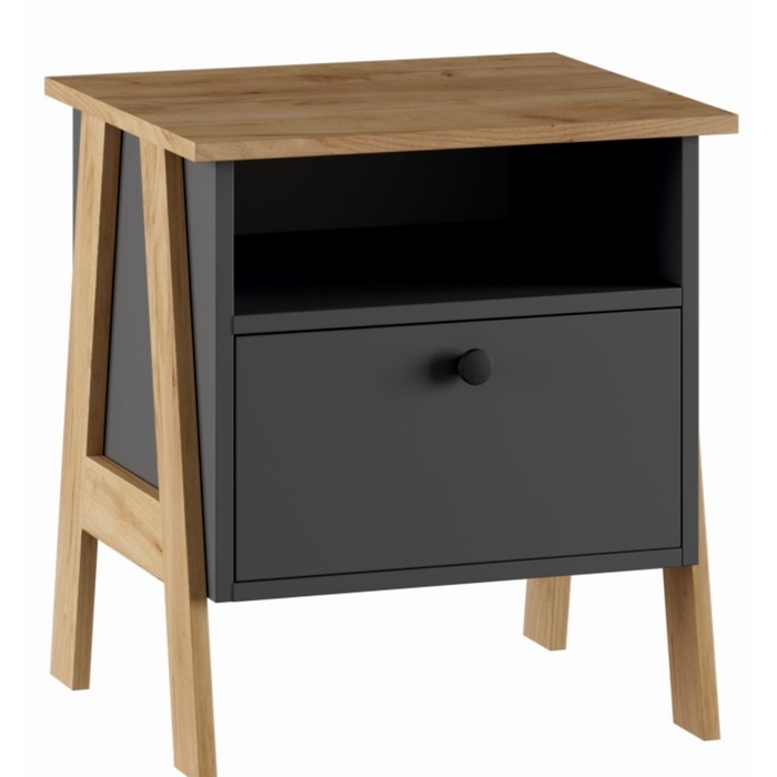Тумба прикроватная Теодора, 480х421х515, Графит/Крафт золотой – это компактная тумба подходит для любого современного интерьера. В выдвижном ящике всегда под рукой вещи и аксессуары, а на столешницу можно поставить стильный светильник, декоративные мелочи или вазу.