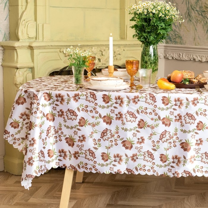Скатерть Доляна "Red flowers" 145х220 см, 100% п/э