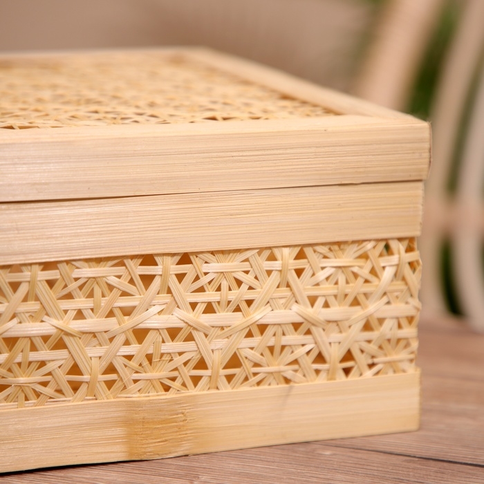Шкатулка плетёная с крышкой, из бамбука 25х25х12 см