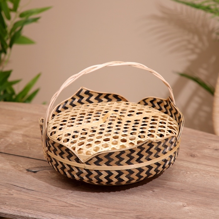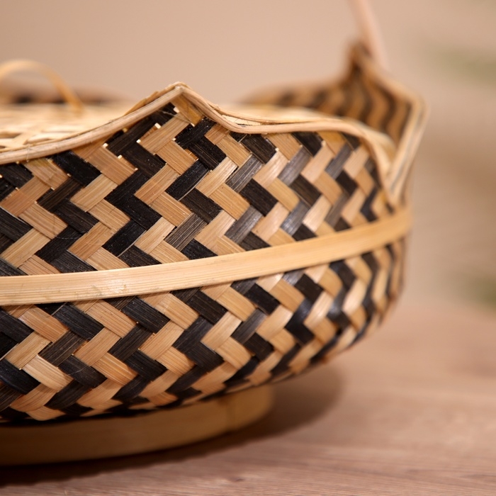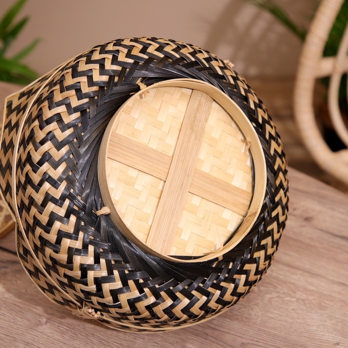 Корзинка с крышкой плетёная, из бамбука 30х30х20 см