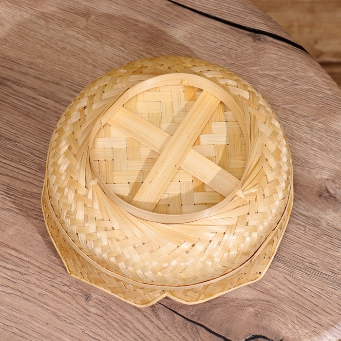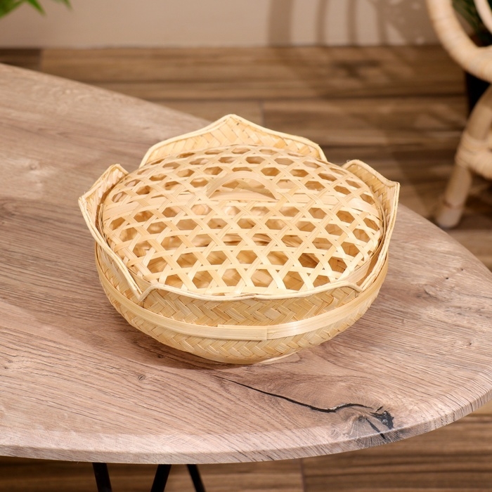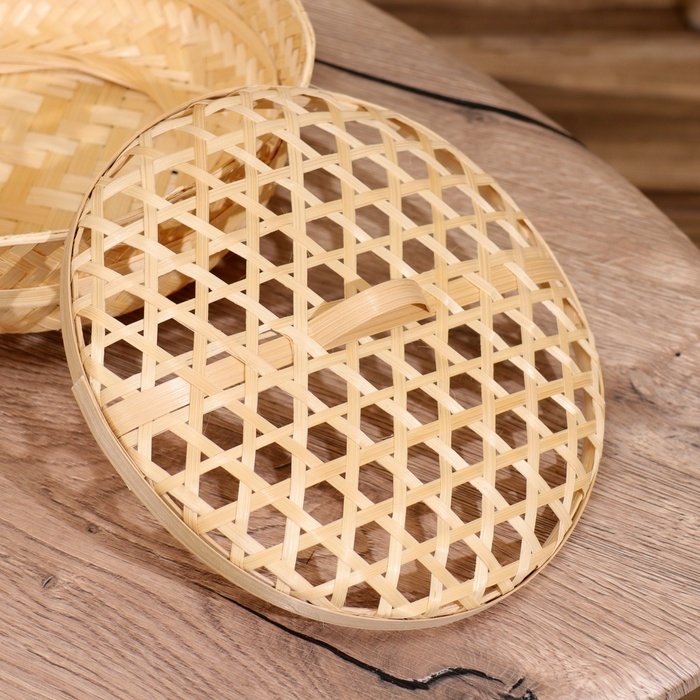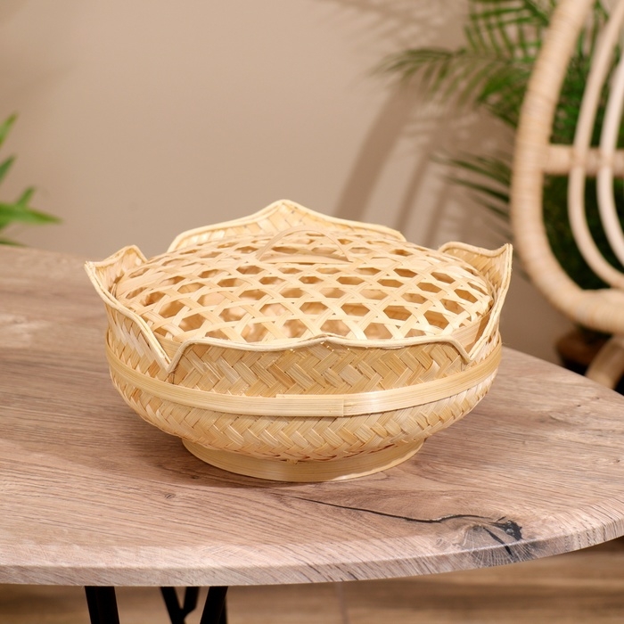 Вазочка с крышкой плетёная, из бамбука 25х25х11 см