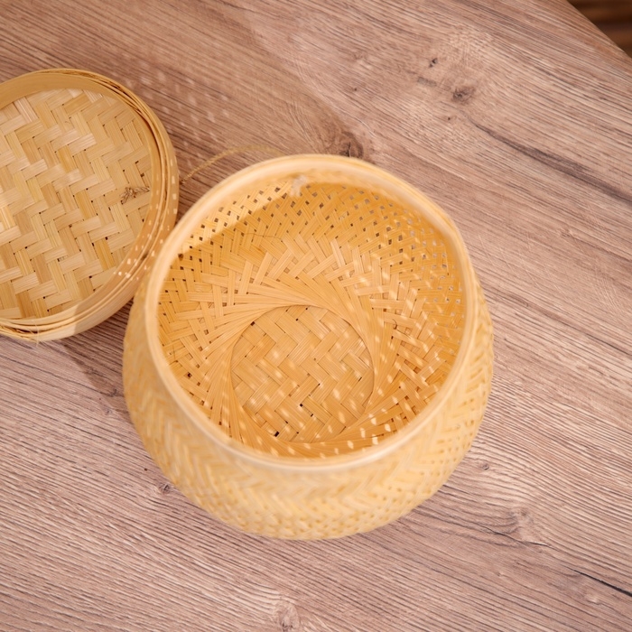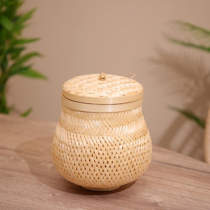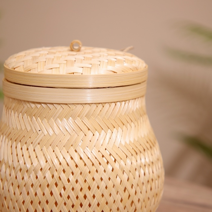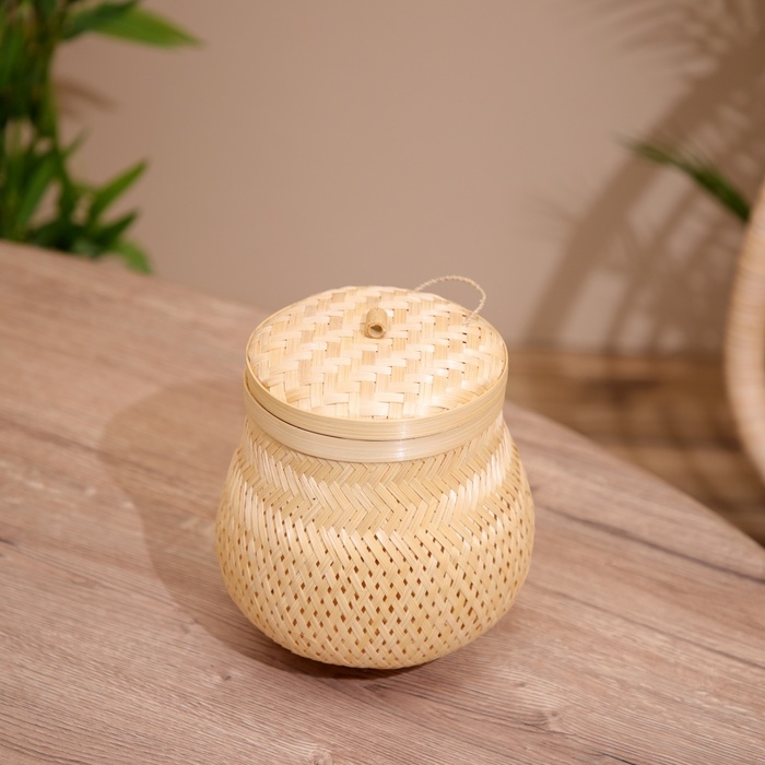 Корзинка с крышкой плетёная, из бамбука 20х20х22 см