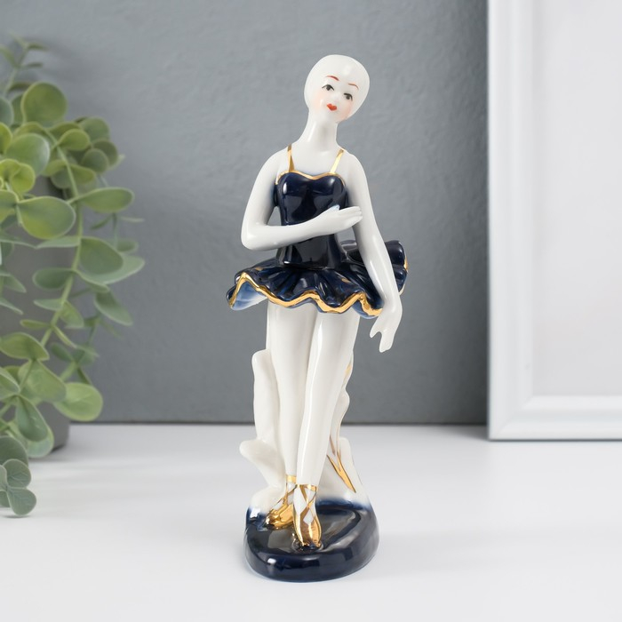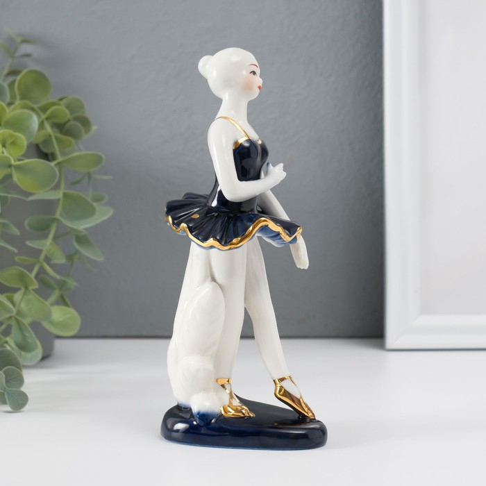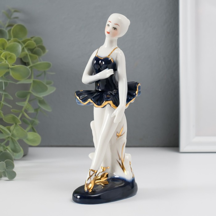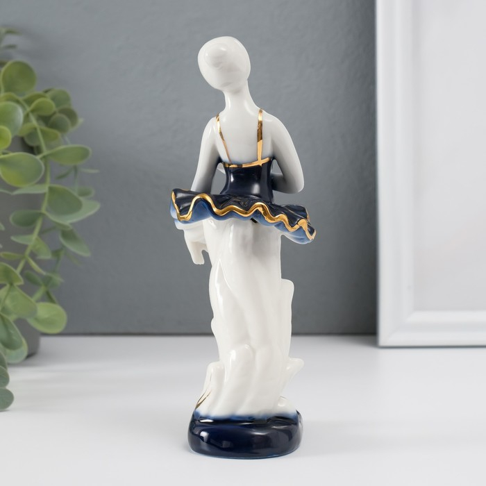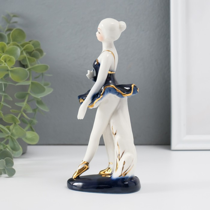 Сувенир керамика под фарфор "Балерина у станка" кобальт 16х7х8 см