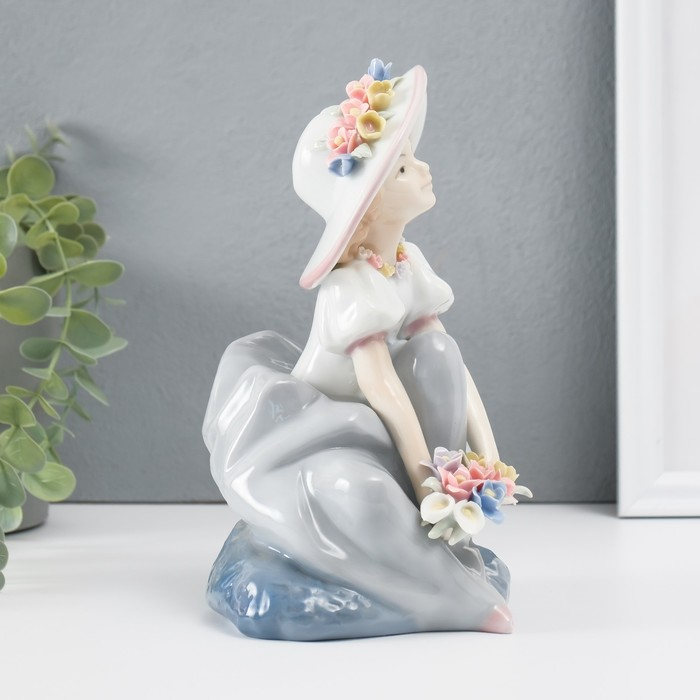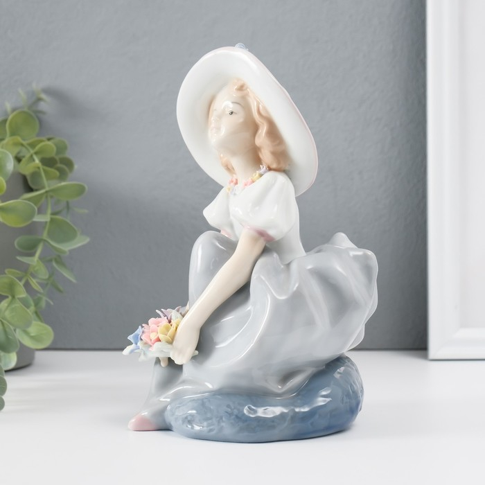 Сувенир керамика под фарфор "Девушка в голубом платье в шляпке с цветами" 17,8х12х12 см