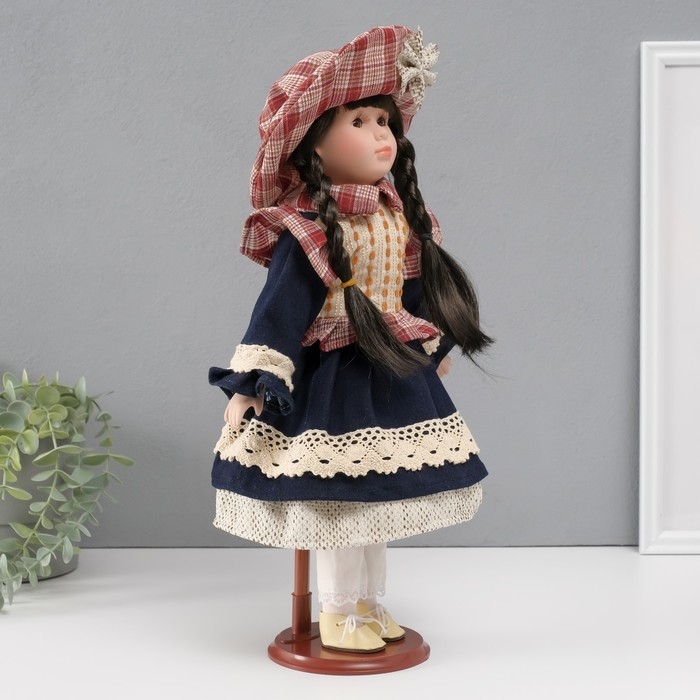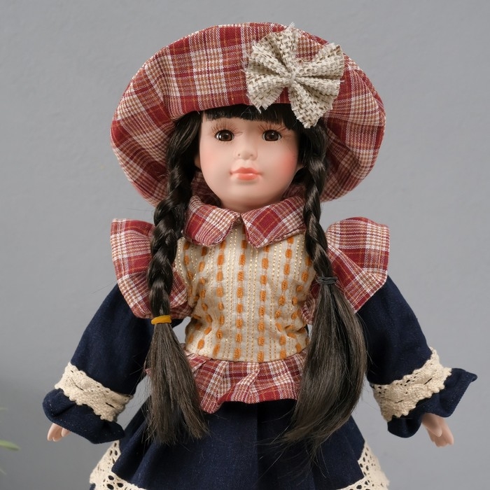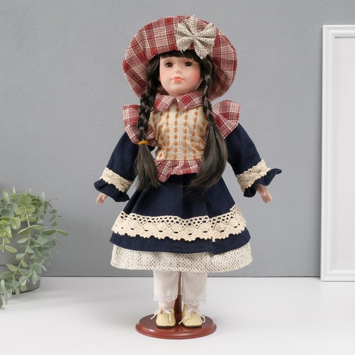 Кукла коллекционная керамика "Есения в бежевой жилетке и синей юбке" 39 см