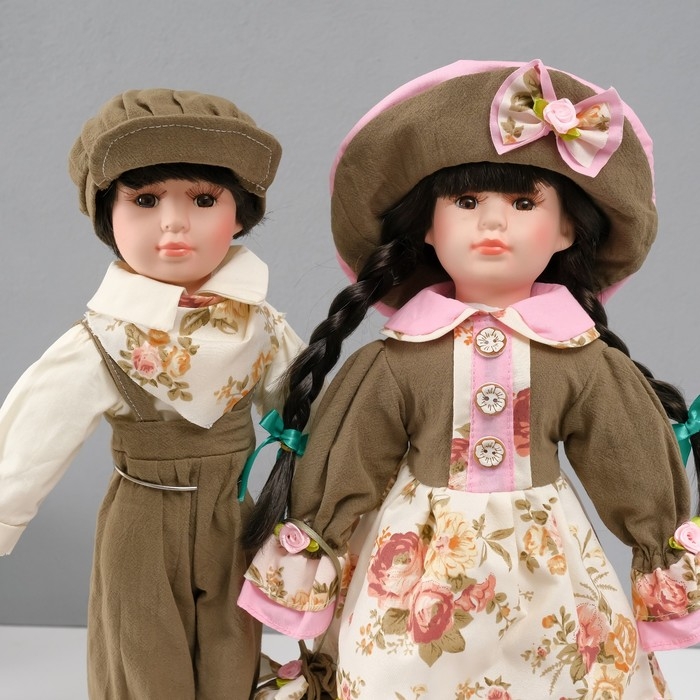 Кукла коллекционная парочка "Марина и Паша, зелёный наряд с цветами" набор 2 шт 40 см