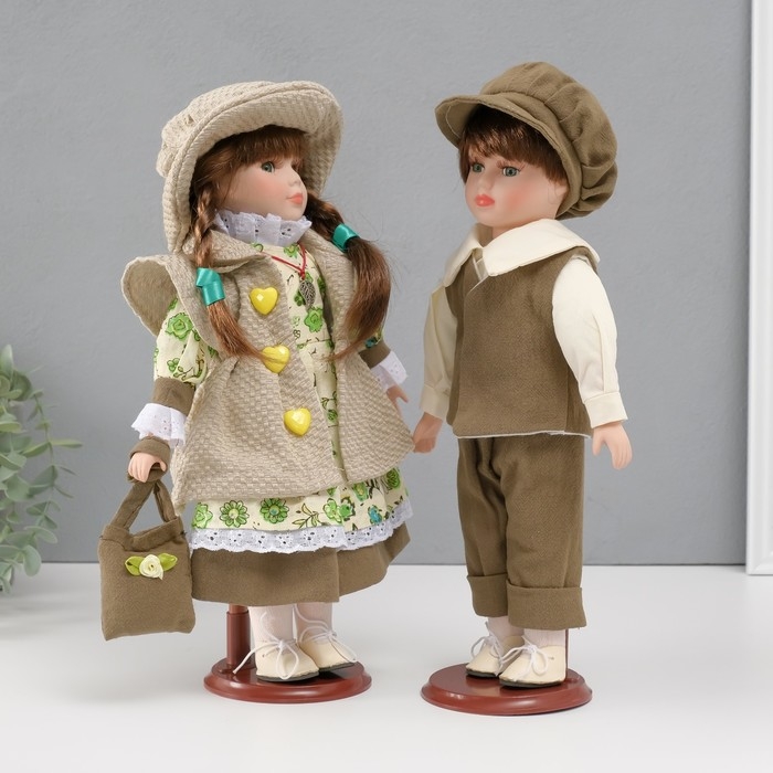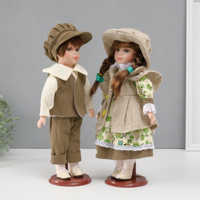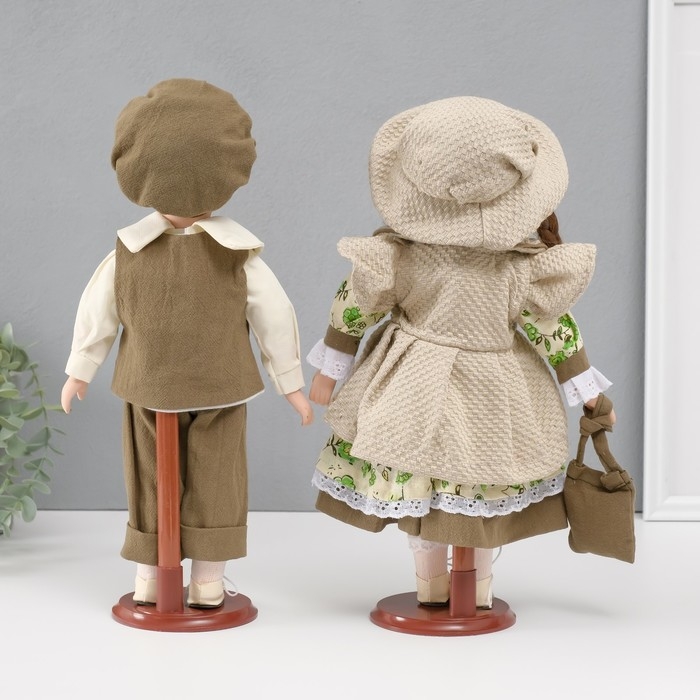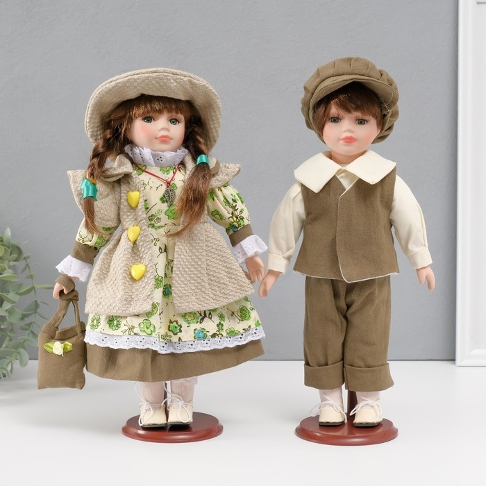 Кукла коллекционная парочка "Алиса и Тимофей, зелёный наряд с цветами" набор 2 шт 31 см