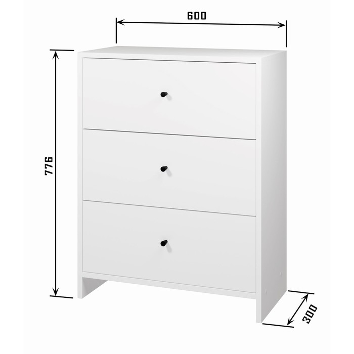 Комод 3Я-600, 600х300х776, Квадро/Белый