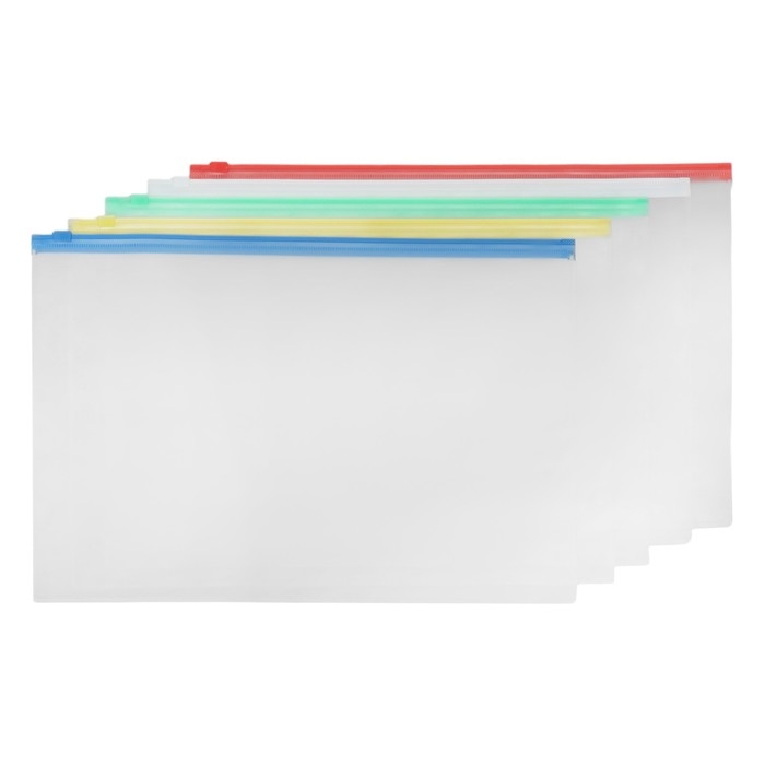 Набор папок-конверт на ZIP-молнии А4, 150 мкм, Calligrata, c цветной молнией, прозрачные, 10 штук, микс