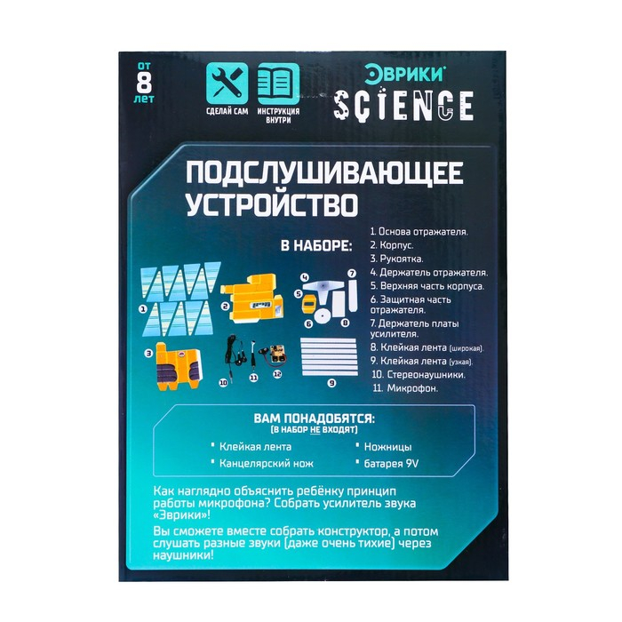 Набор для опытов «Подслушивающее устройство», работает от батареек