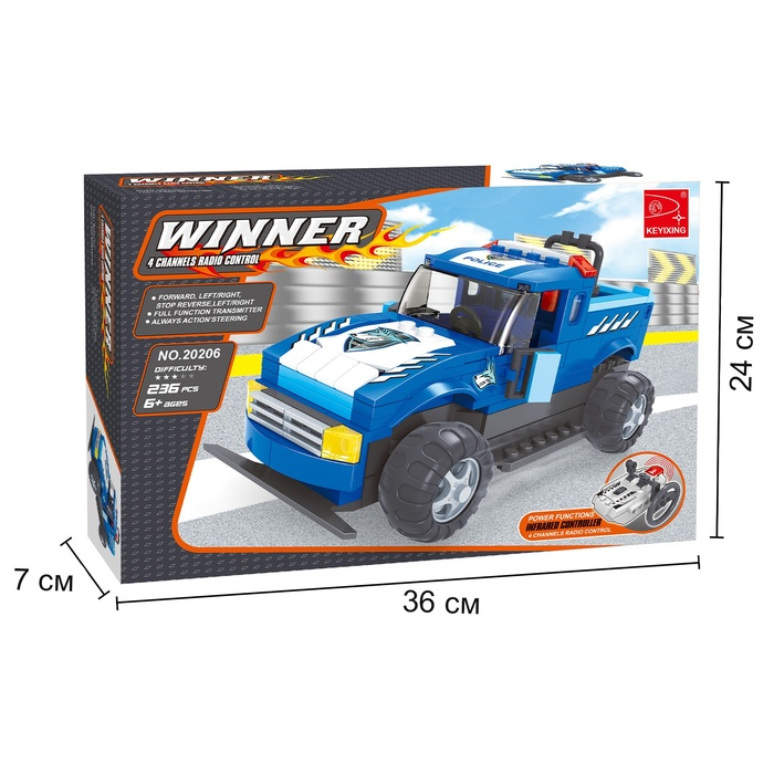 Конструктор полицейский внедорожник KEYIXING Winner, на радиоуправлении, 236 деталей, 6+