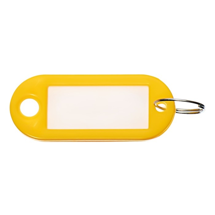 Брелоки для ключей с информационным окном и бумажной вставкой для пометок. Размер брелока 52 х 23 мм, размер окна 36 х 18мм – предназначен для нанесения маркировки. Защитная пленка размером 18 х 36 мм из прозрачного полиэтилена служит для предохранения бумажной вкладки. Материал - мягкий пластик. Упаковка по 100 штук, цвет - желтый. Корпус изготовлен из гибкого пластика, что увеличивает срок службы брелока для ключей.
