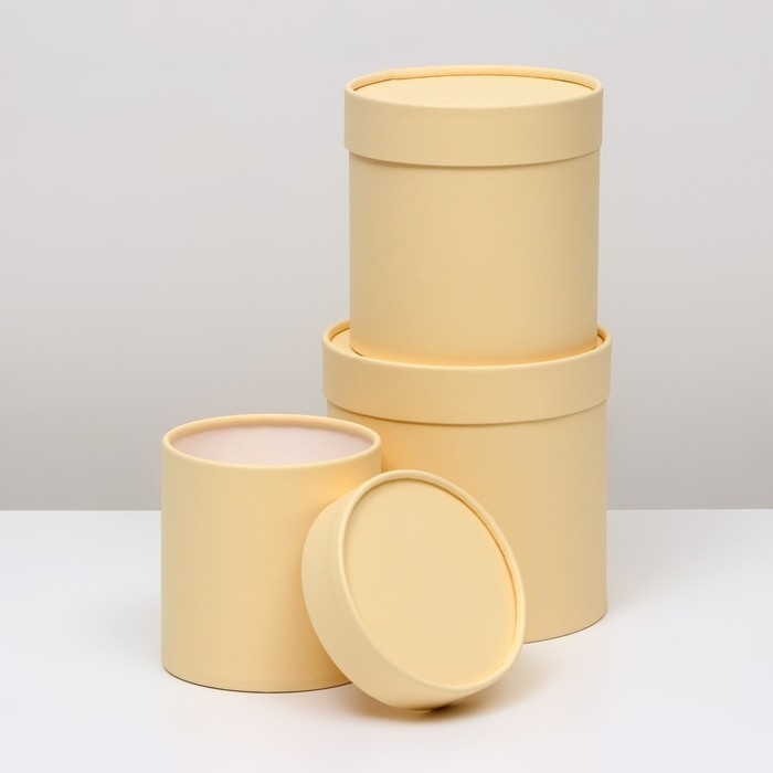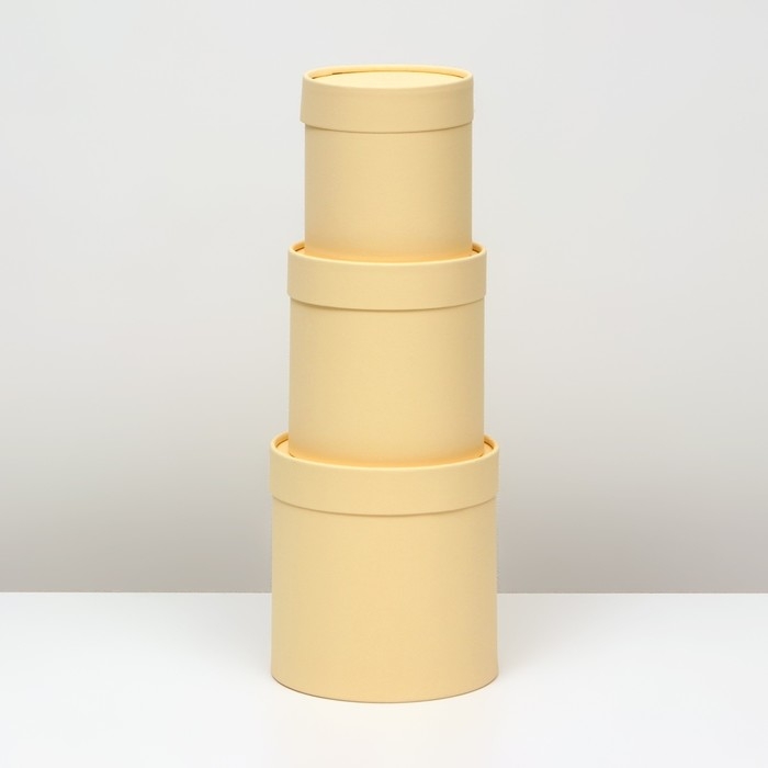 Набор круглых коробок 3 в 1, "Бежевый", 16х16, 14х14, 12х12 см
