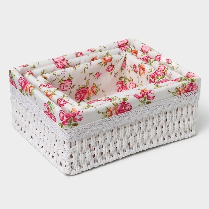 Корзины для хранения LaDо́m, ручное плетение, 3 шт, цвет белый