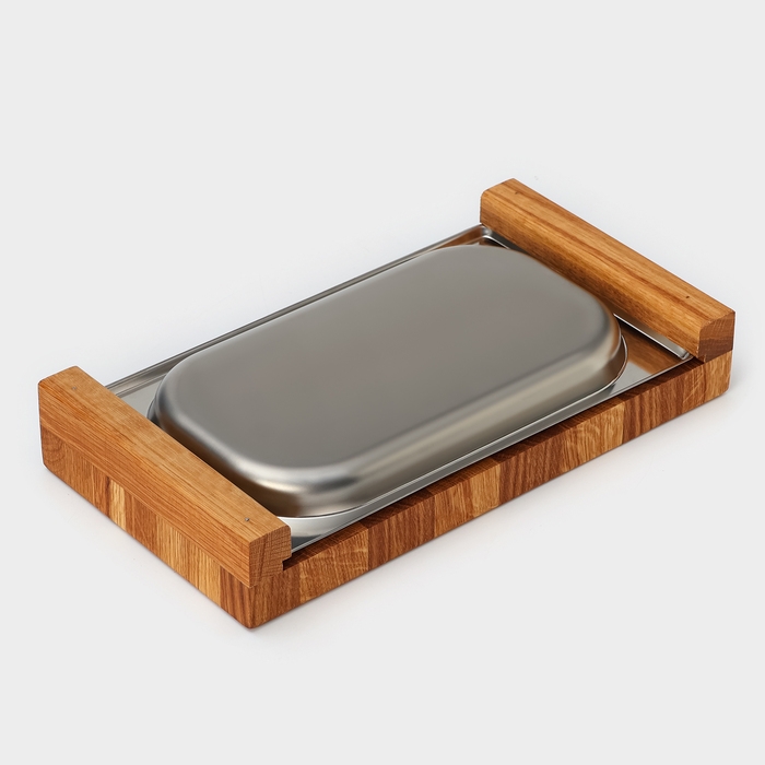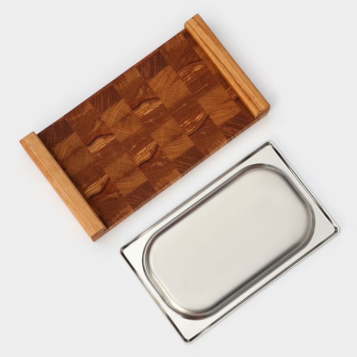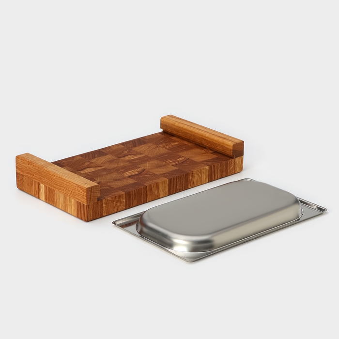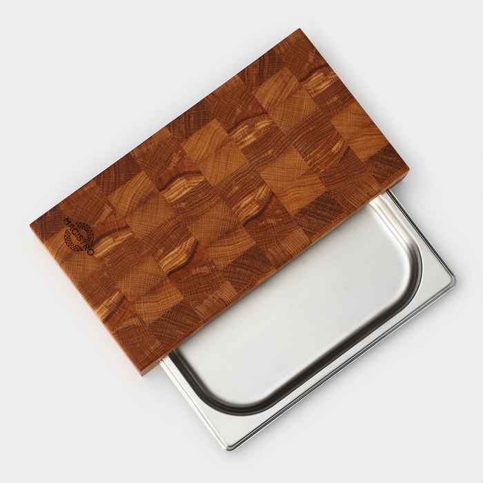 Доска разделочная Magistro, дуб, с металлической гастроёмкостью, 30,5×16,5×5 см, в крафтовой коробке