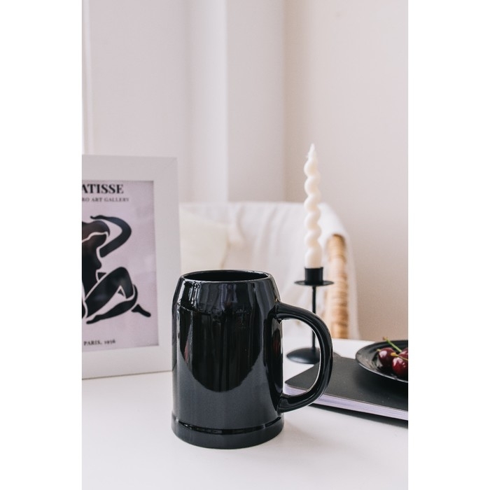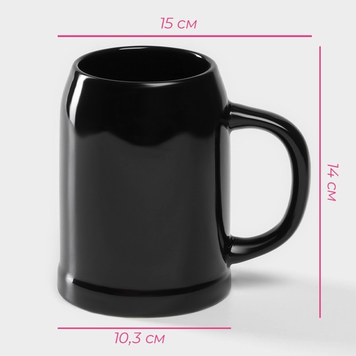 Кружка пивная керамическая Доляна, 500 мл, 15×10,3×14 см, цвет чёрный