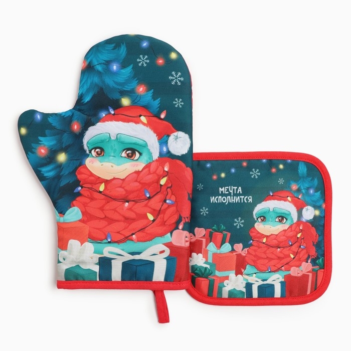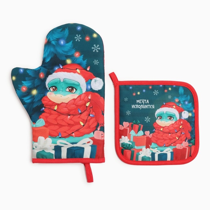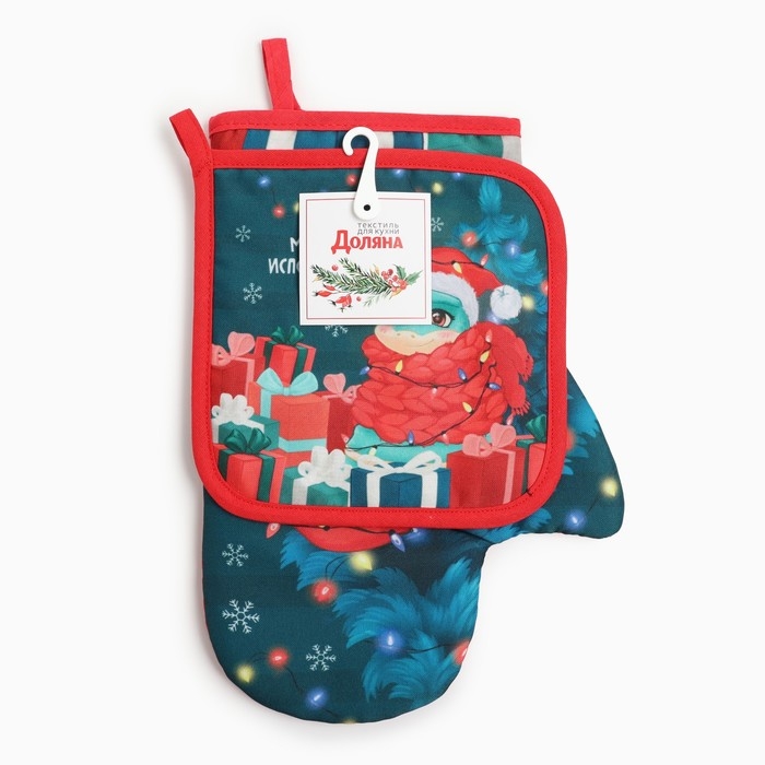 Набор кухонный Доляна "Мечта исполнится": прихватка 17х17 см, варежка-прихватка 20х28 см, 35% хлопок