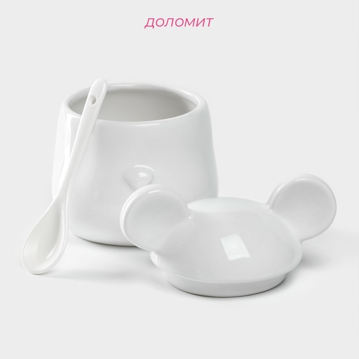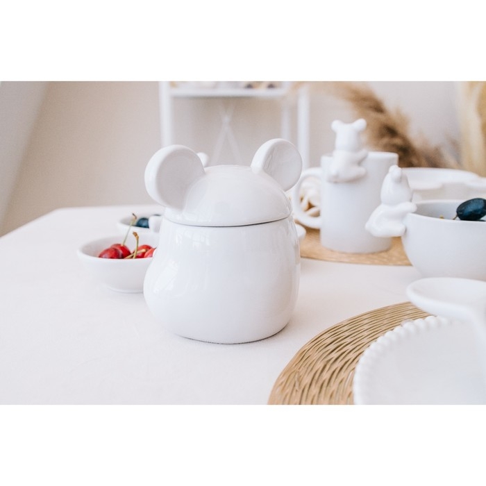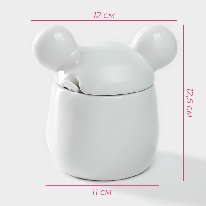 Банка для хранения сыпучих продуктов Доляна «Мишка Отто», 400 мл, 11×12×12,5 см, цвет белый