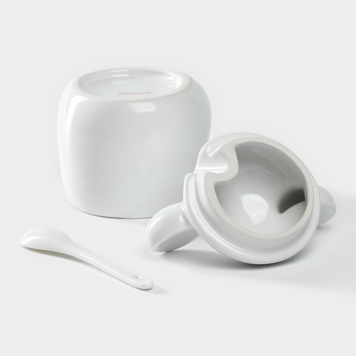 Сахарница фарфоровая с ложкой на бамбуковой подставке BellaTenero, 350 мл, цвет белый