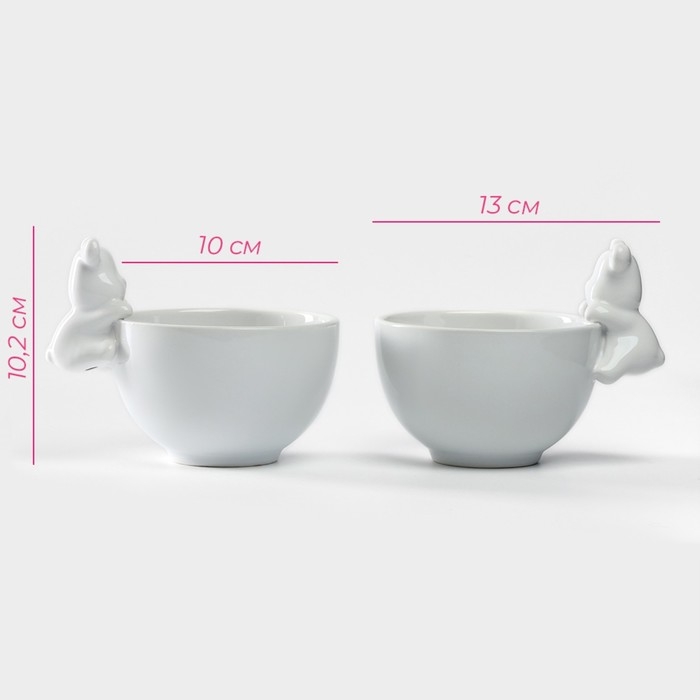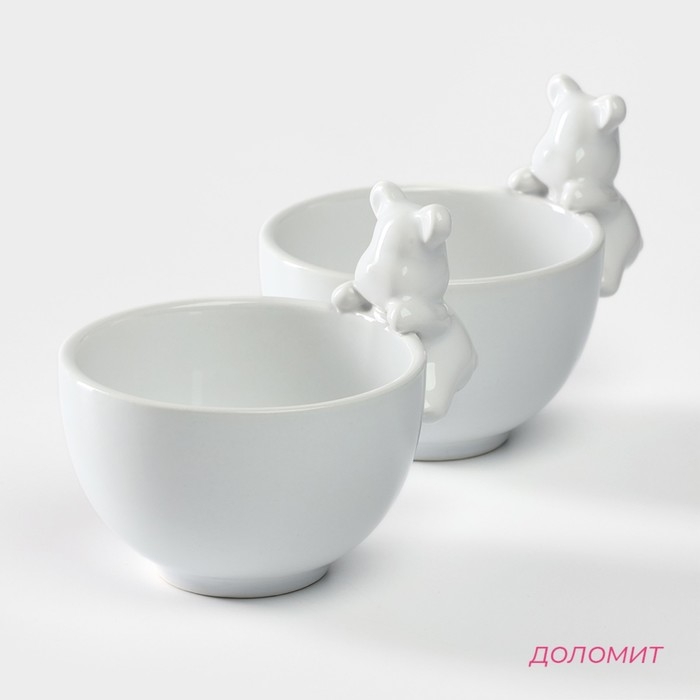 Набор салатников керамических Доляна «Мишка Отто», 13×10,2 см, цвет белый, 2 шт