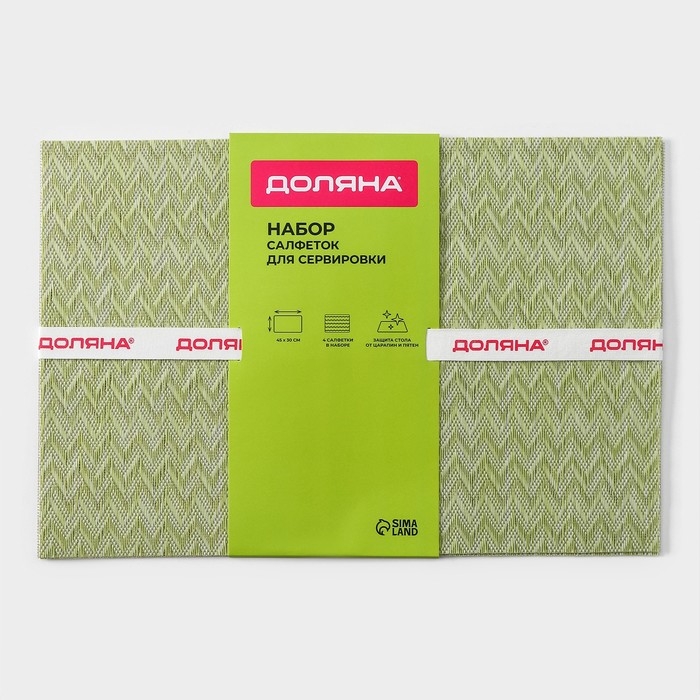 Салфетки сервировочные на стол Доляна, 4 шт, 45×30 см, цвет зелёный