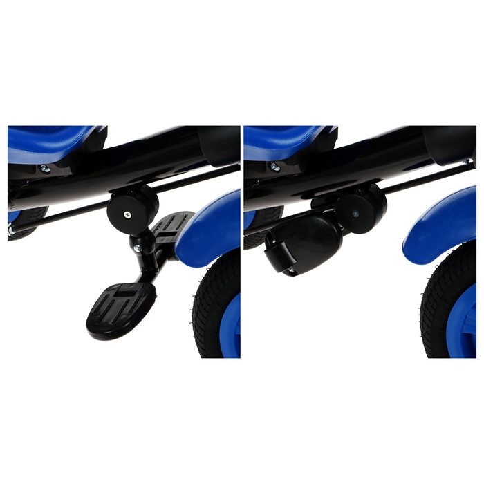 - Надувные резиновые колёса смягчают ход и обеспечивают сцепление с дорогой.