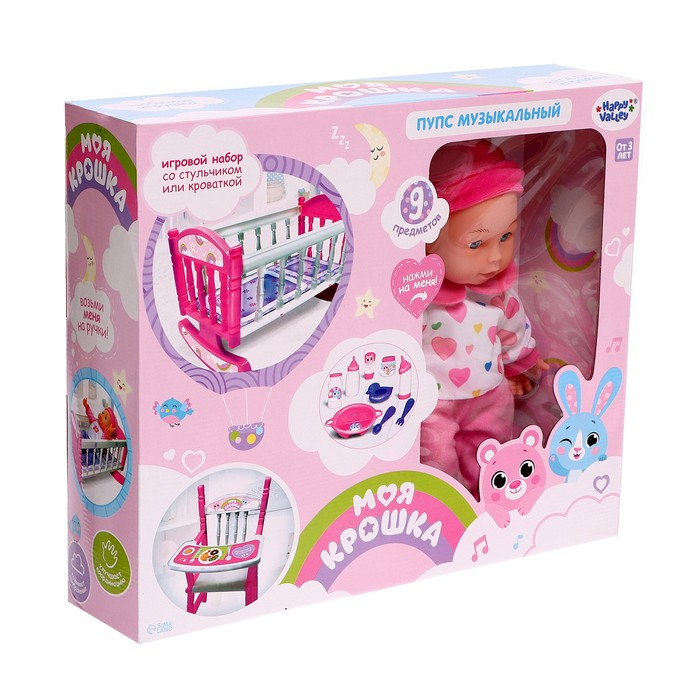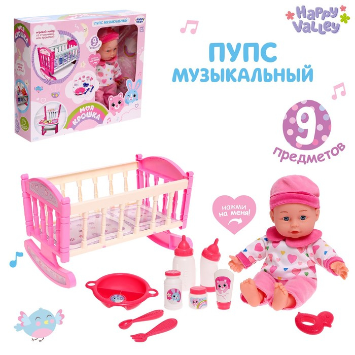 Пупс «Моя малышка» музыкальный, с кроваткой и аксессуарами, БОНУС - открытка