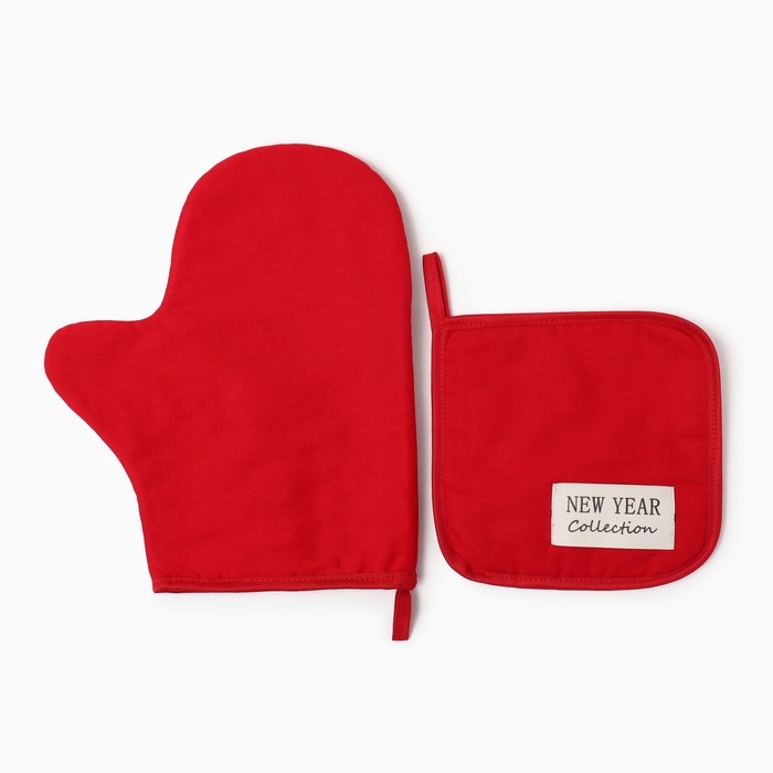 Набор кух.Этель New year collection,цв.красный, варежка-прихватка18х29 см,прихватка19х19 см,