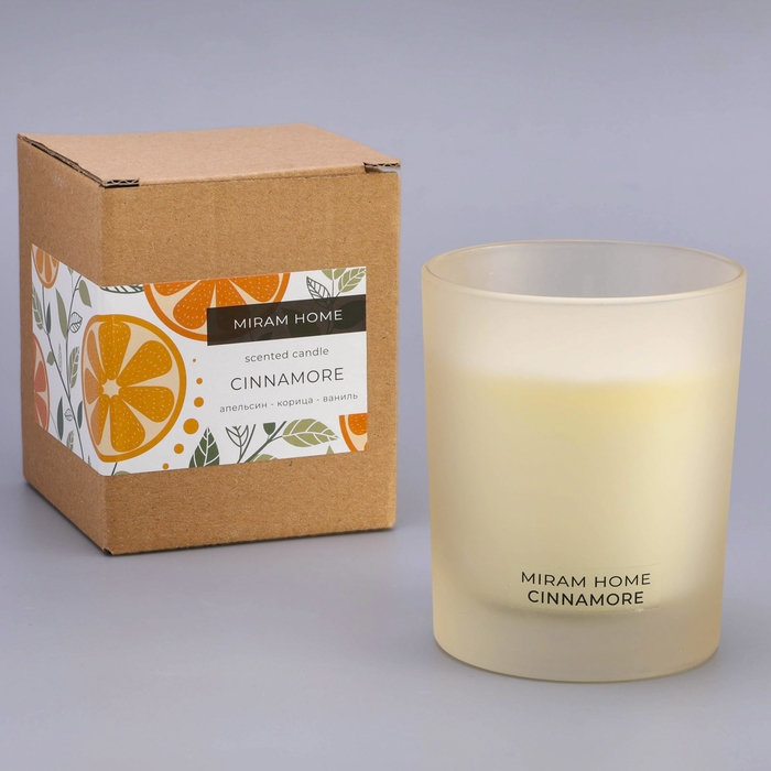 Свеча ароматическая в стекле "CINNAMORE", апельсин, корица и ваниль, 200 г