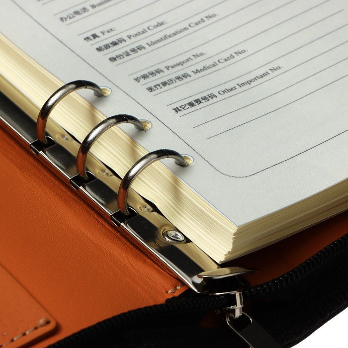 Органайзер на кольцах А5, 96 листов в линейку, на молнии с 3-х сторон, кожзам, с калькулятором, МИКС