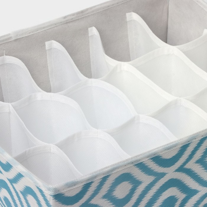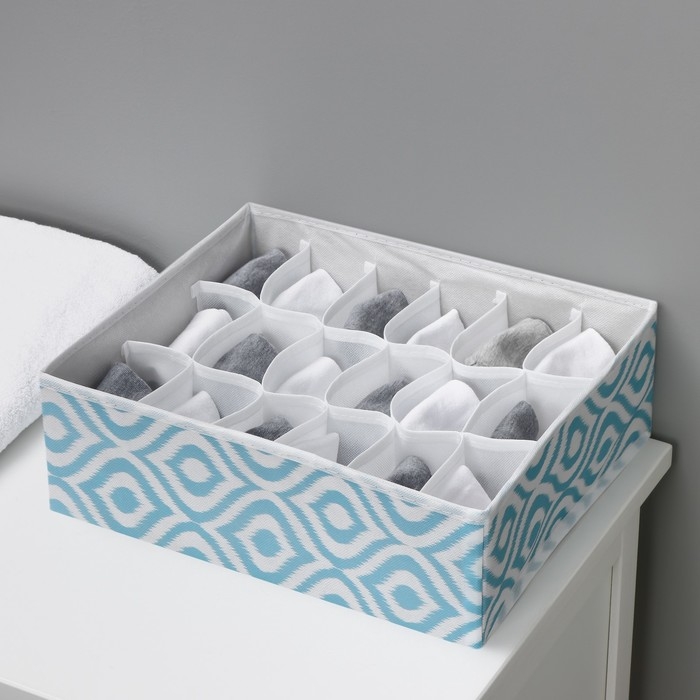 Органайзер для хранения белья Доляна «Лагуна», 18 ячеек, 35×30×12 см, цвет бирюзовый