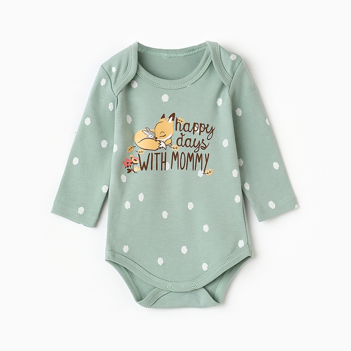 Боди детское с длинным рукавом "Лисичка", цвет ментол, рост 80