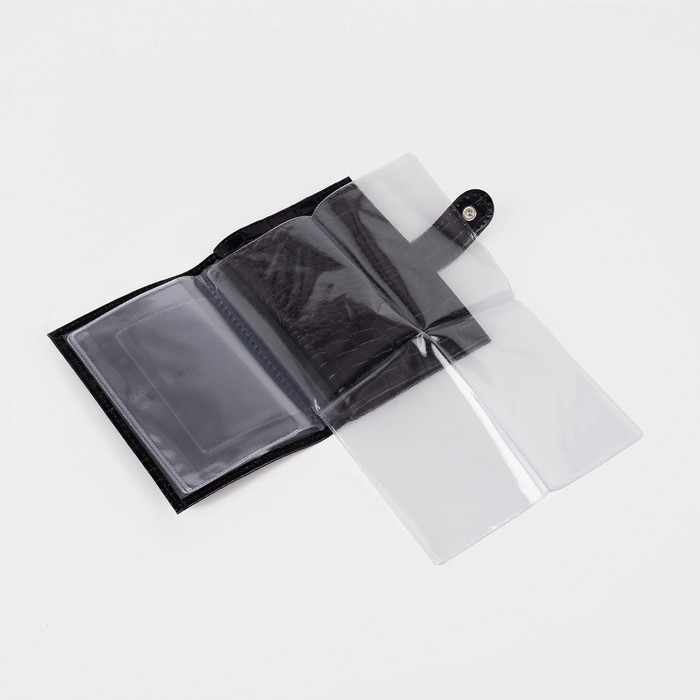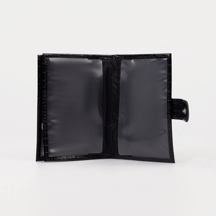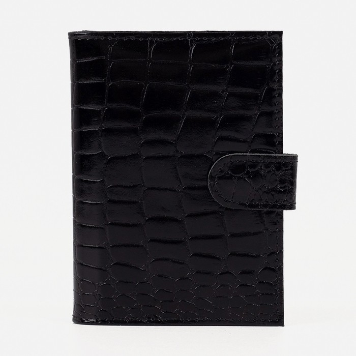 Обложка для автодокументов и паспорта на кнопке, крокодил, цвет чёрный