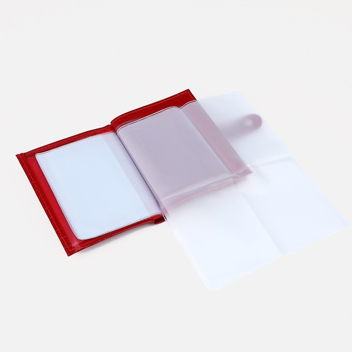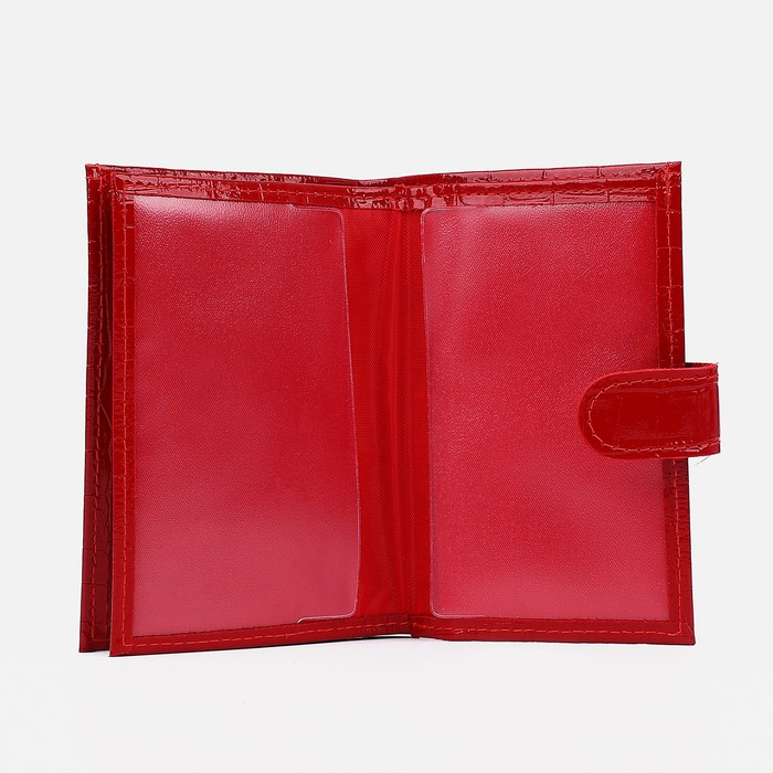 Обложка для автодокументов и паспорта на кнопке, отдел для купюр, цвет красный