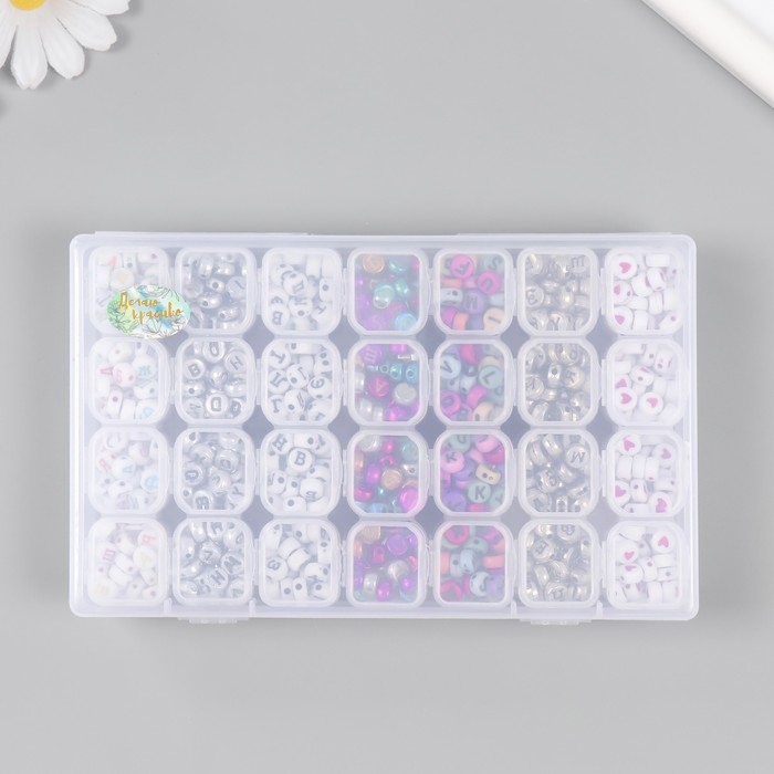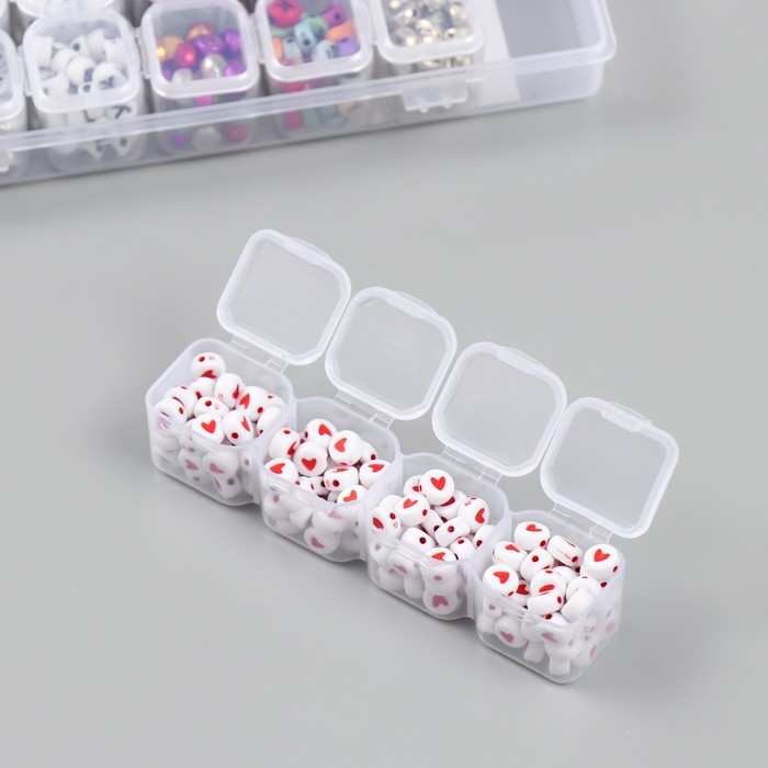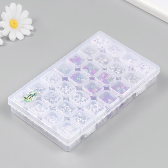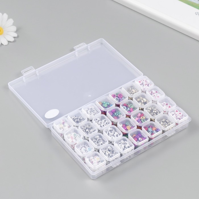 Бусины в шкатулке "Диски с рисунками" 28 делений 10,5х17,5х2,6 см