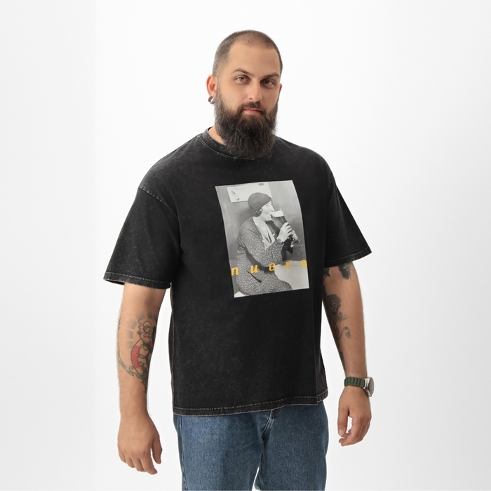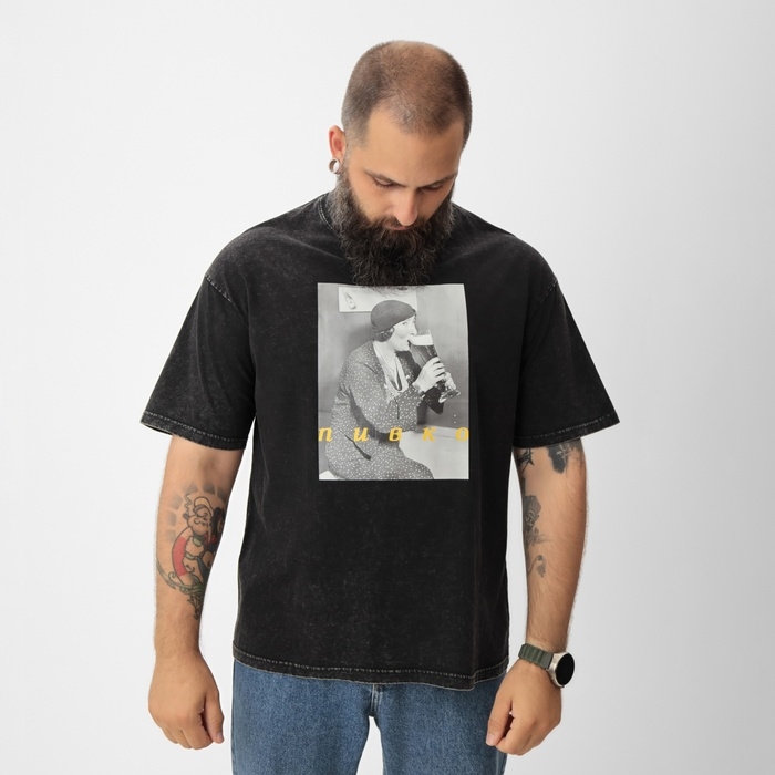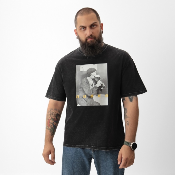 Футболка мужская MIST "Пивко" из вареного хлопка, цв. черный, р-р M