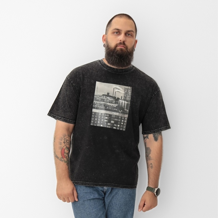 Футболка мужская MIST "Город" из вареного хлопка, цв. черный, р-р XL