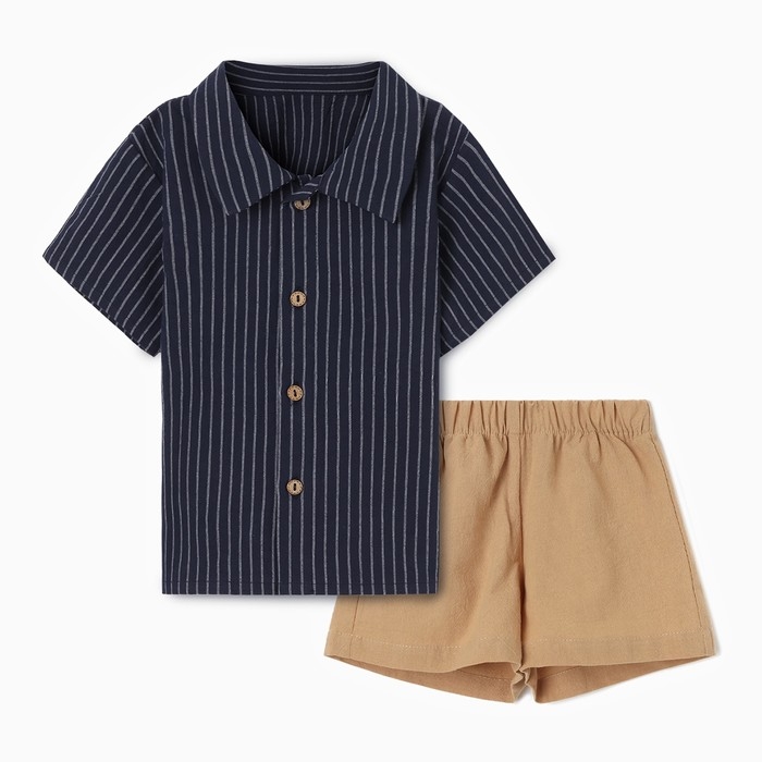Костюм детский (рубашка и шорты) Крошка Я, р.74-80, синий