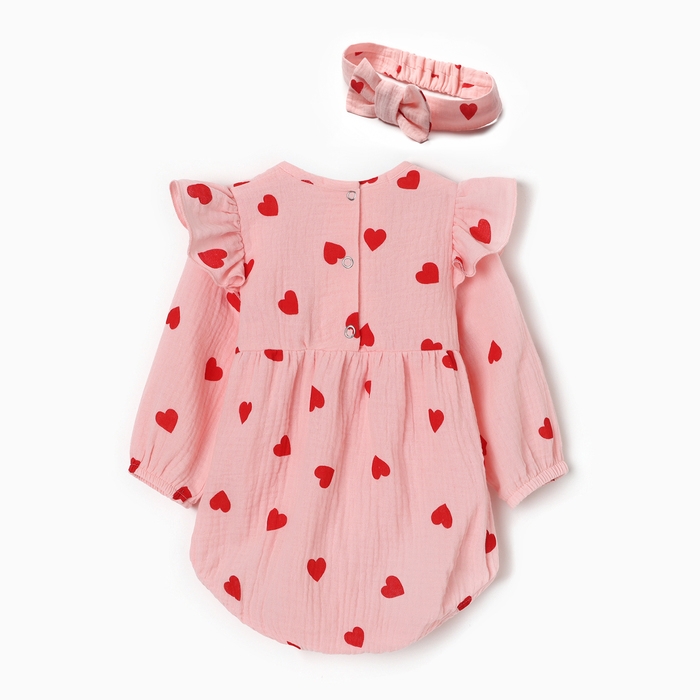 Комплект (боди и повязка) Крошка Я "Муслин", р. 74-80, цвет розовый
